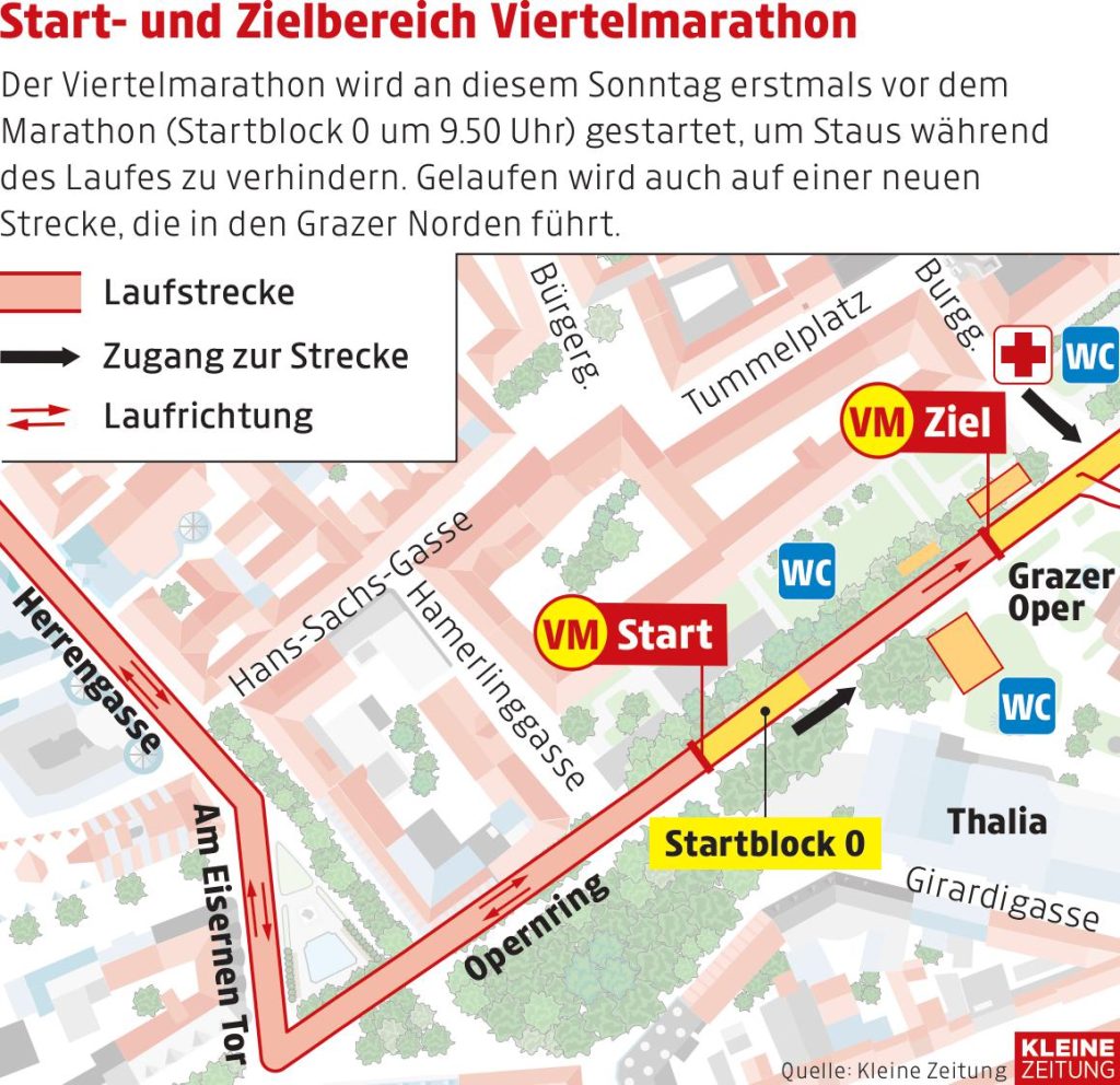 10:00 Uhr – Start Elite und Startblock 1 Kleine Zeitung Marathon und Hyundai Staffelmarathon