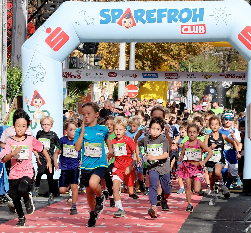 Ein emotionales Highlight war der SPAREFROH Bambinisprint, bei dem 350 Bambinis ihre ersten Laufversuche im Rahmen des Graz Marathons machten und die Herzen ihrer Eltern eroberten.